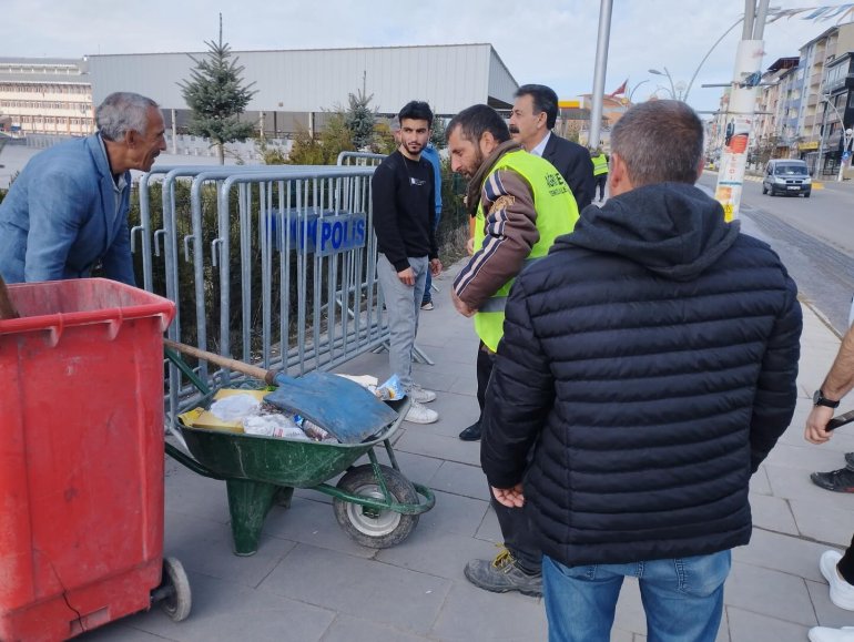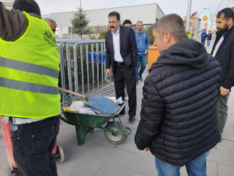 Yapılan yazılı açıklamada; Belediye Başkanı Hazal Aras ve Memet Akkuş'un gözetiminde devam eden çalışmaya, Belediye Temizlık işleri personelinin eksiksiz katıldı. İtfaiye Müdürlüğü ekipleri de caddelerde sulama ve yıkama çalışması yaptı. Başkan Aras temizlik çalışmalarına ilişkin olarak yaptığı açıklamada 'Temiz Bir Ağrı İçin, Tertemiz Niyetimizle Kolları Sıvadık. Temizlik İşleri Müdürlüğü bünyesinde çalışan emekçi arkadaşlarımızla Mahallelerimizde Seferberlik ruhuyla çalışıyoruz.