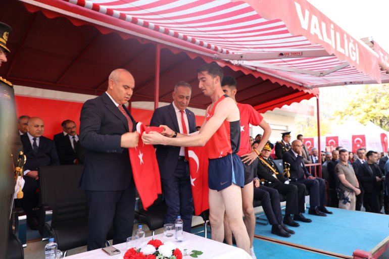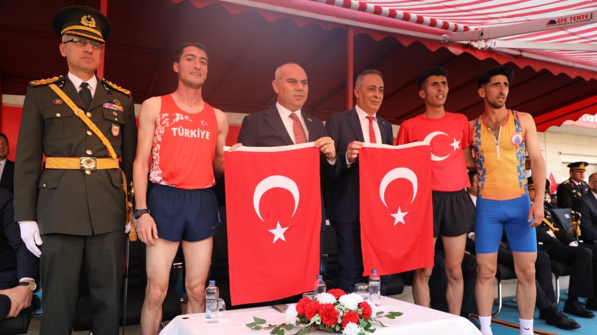 Ödül töreninin ardından milli sporcular, Türk Bayrağını Ağrı Valisi Mustafa Koç'a takdim etti. Bayrağı gururla teslim alan Vali Koç, genç sporcuları tebrik ederek, başarılarının devamını diledi.