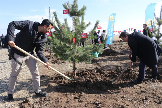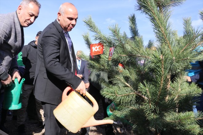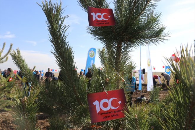 Ağrı - Ağrı'da, Cumhuriyet'in 100. yıl dönümü etkinlikleri kapsamında adliye personeli 500 fidanı toprakla buluşturdu.