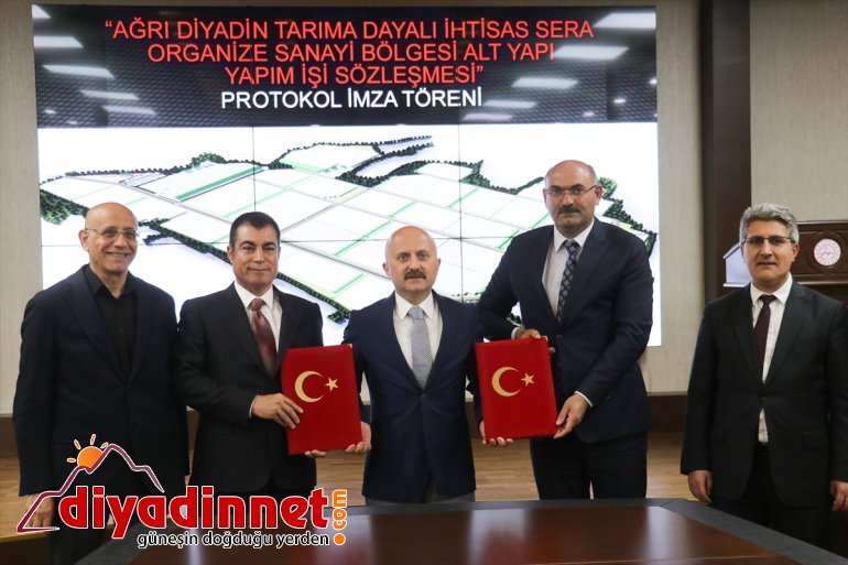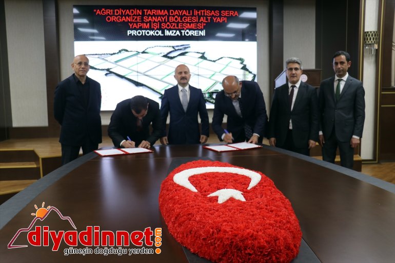 Valilik toplantı salonunda "Diyadin Tarıma Dayalı İhtisas Organize Sanayi Bölgesi Altyapı Yapım İşi" protokolü imza töreni düzenlendi.