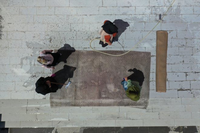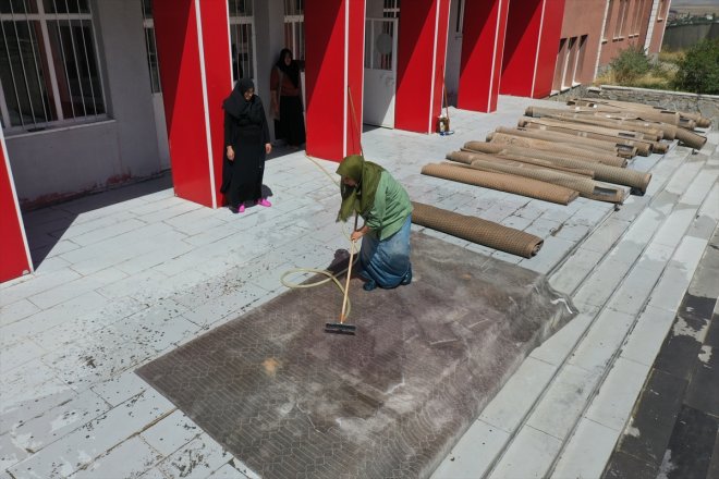El birliğiyle yapılan çalışmaların sona geldiği eğitim yuvalarındaki halılar da ilçe merkezinde ekiplerce yıkanıp kurutulduktan sonra okullara teslim ediliyor.