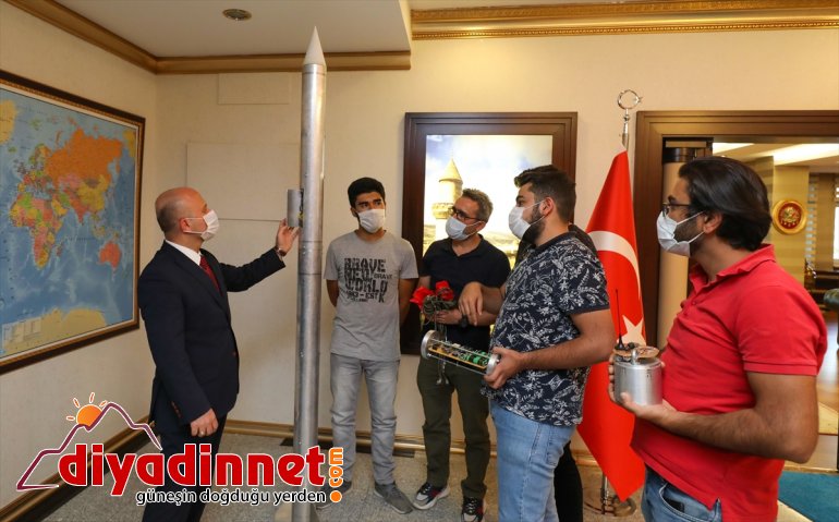 Öğrenciler, ziyaretti elektronik, yazılım, mekanik ve fizik bilgilerini kullanarak ürettikleri 220 santimetrelik yerli roket hakkında Varol'a bilgi verdi.