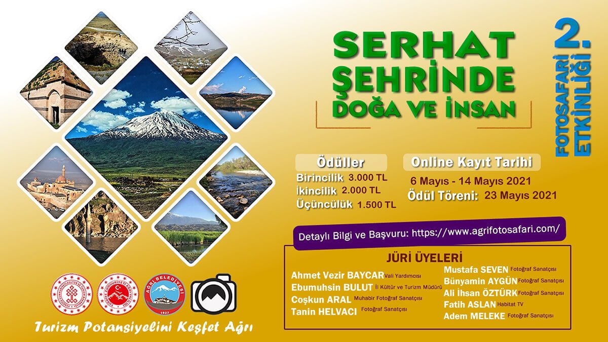 Ağrı ve ilçeleri, köylerin yaşam ve doğal dokusunun belgelenmesi, tarihi dokusunun bilinirliğinin artırılması ile doğal güzelliklerinin tanıtımı amacıyla yapılması planlanan Foto Safari kayıtları, bugün internet üzerinden başlayıp 14 Mayıs'ta sona erecek.