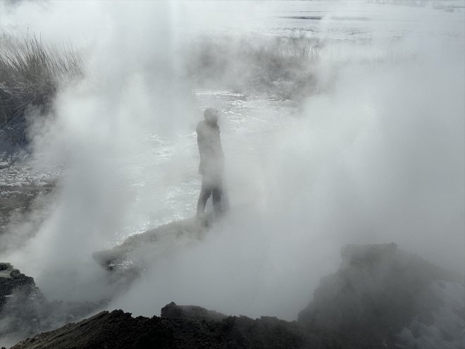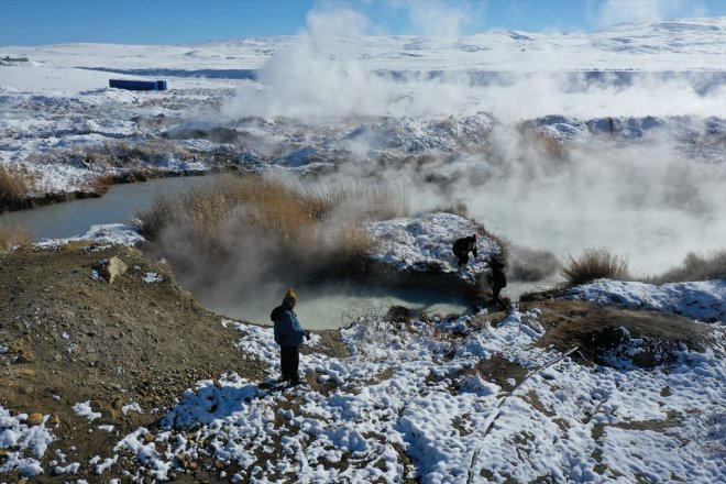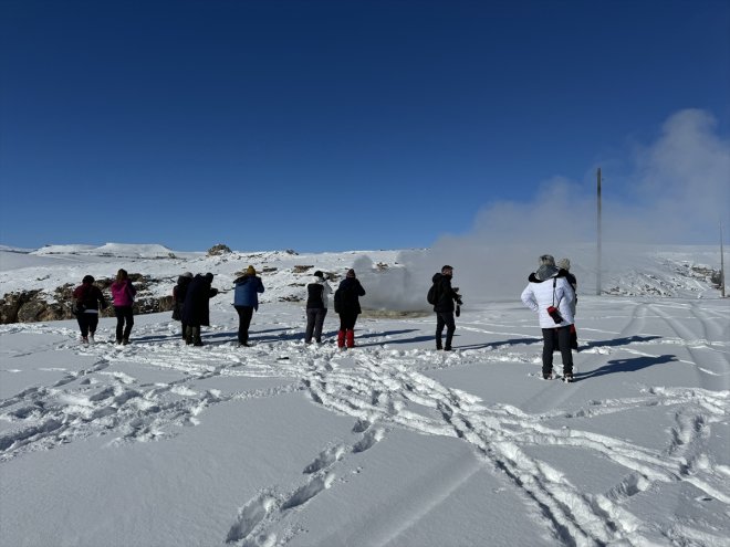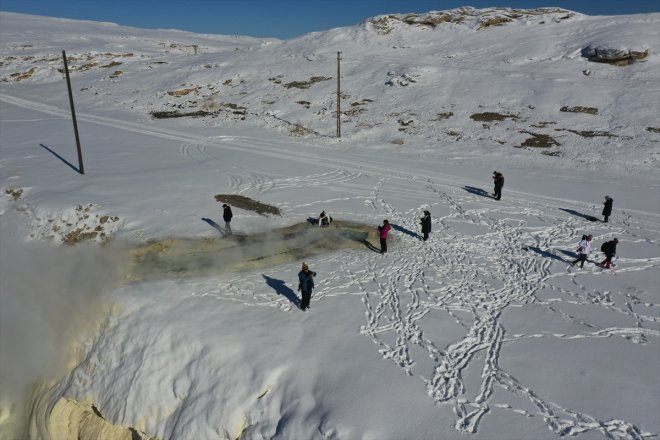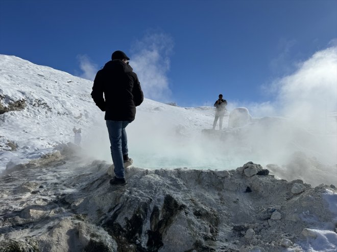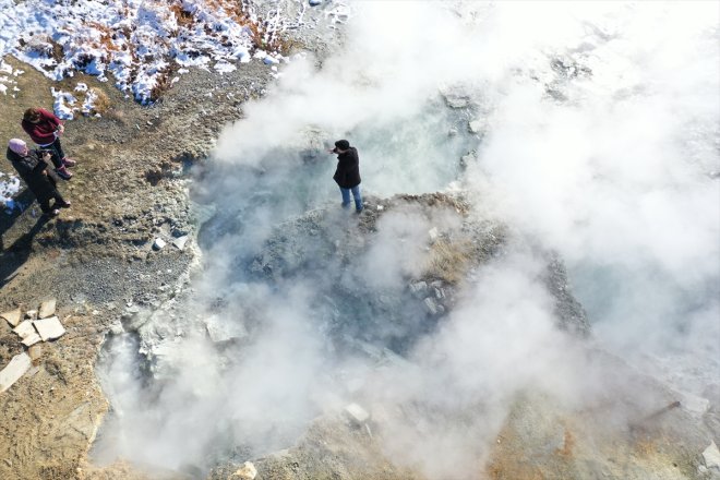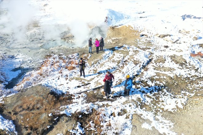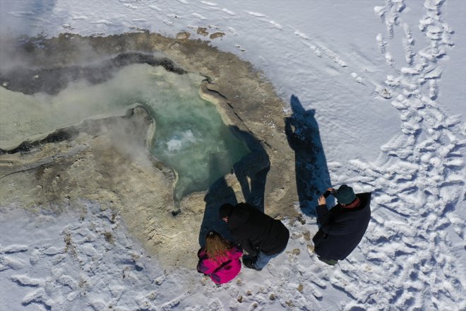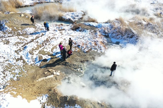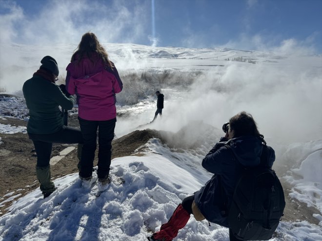 Diyadin ilçesindeki Murat Kanyonu ile jeotermal alanda yerin altından çıkan sıcak suyun bulunduğu kaplıca alanını gezen fotoğraf tutkunları, buradaki doğal güzellikleri fotoğraflıyor.