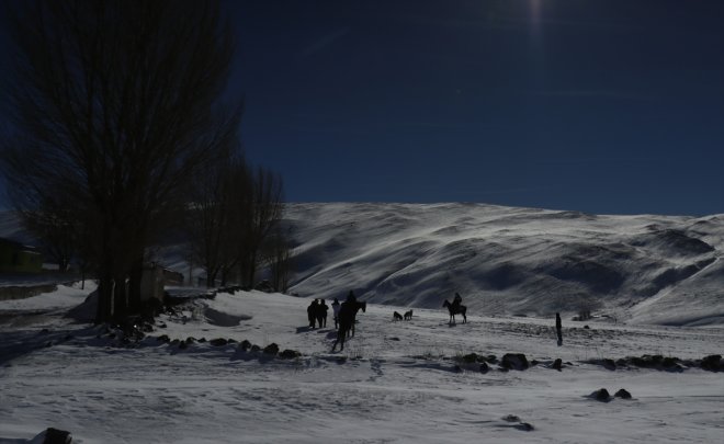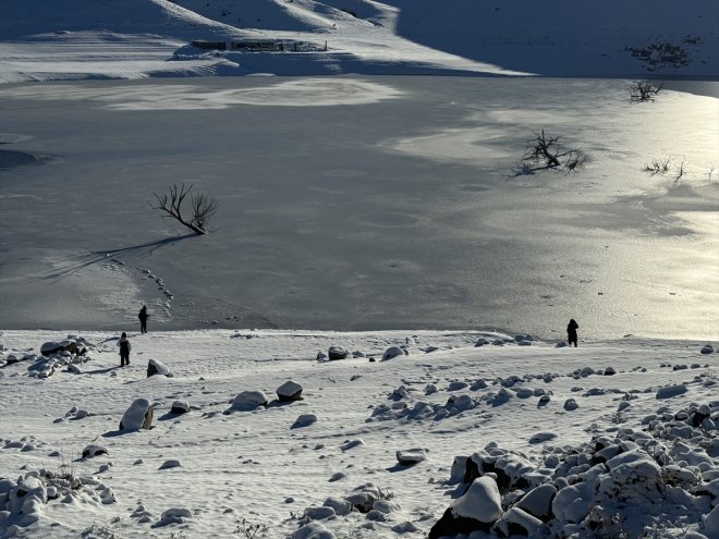 Minare, kar ve buzla kaplı baraj gölünün çevresini gezenler, hem Balık Gölü'ne yakın köylerde yaşama dair fotoğraf çekiyor hem de gittikleri köylerde yeni doğan kuzuları sevip vatandaşlarla sohbet ederek keyifli vakit geçiriyor.