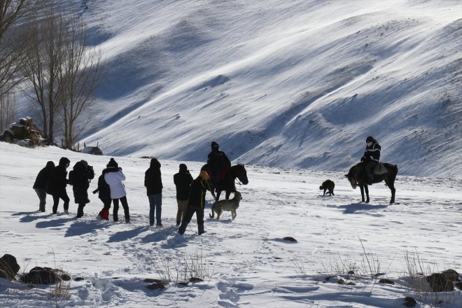 Özellikle son yıllarda bölgeye ilgi gösteren fotoğraf tutkunları, bu sene de karın yağmasıyla beyaza bürünen tarihi ve doğal güzellikleri yerinde görmek için bölgeye gelmeye başladı.