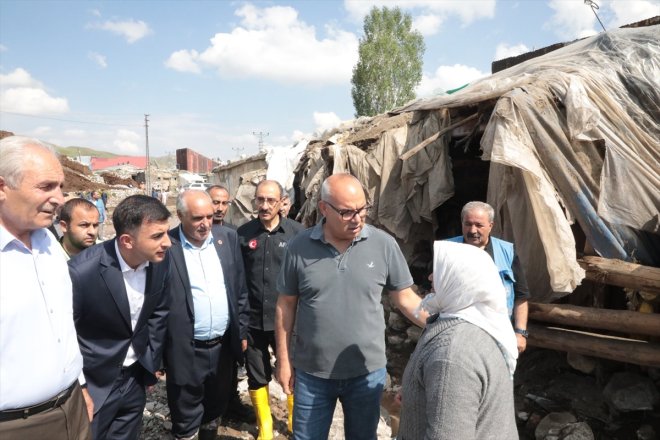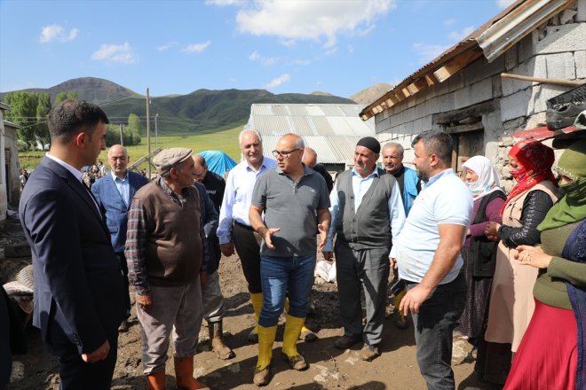 Ağrı - Ağrı Valisi Mustafa Koç, dün selden etkilenen ahır, ev ve araçların zarar gördüğü Eleşkirt ilçesine bağlı Akyumak köyünde incelemelerde bulundu.