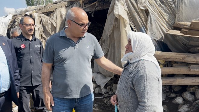 Koç, 7 kiler, 8 ahır, 3 ev, 6 tandırlık, 5 araç ve tarım aletlerinin zarar gördüğü köyde vatandaşlarla "geçmiş olsun" dileklerinde bulundu.