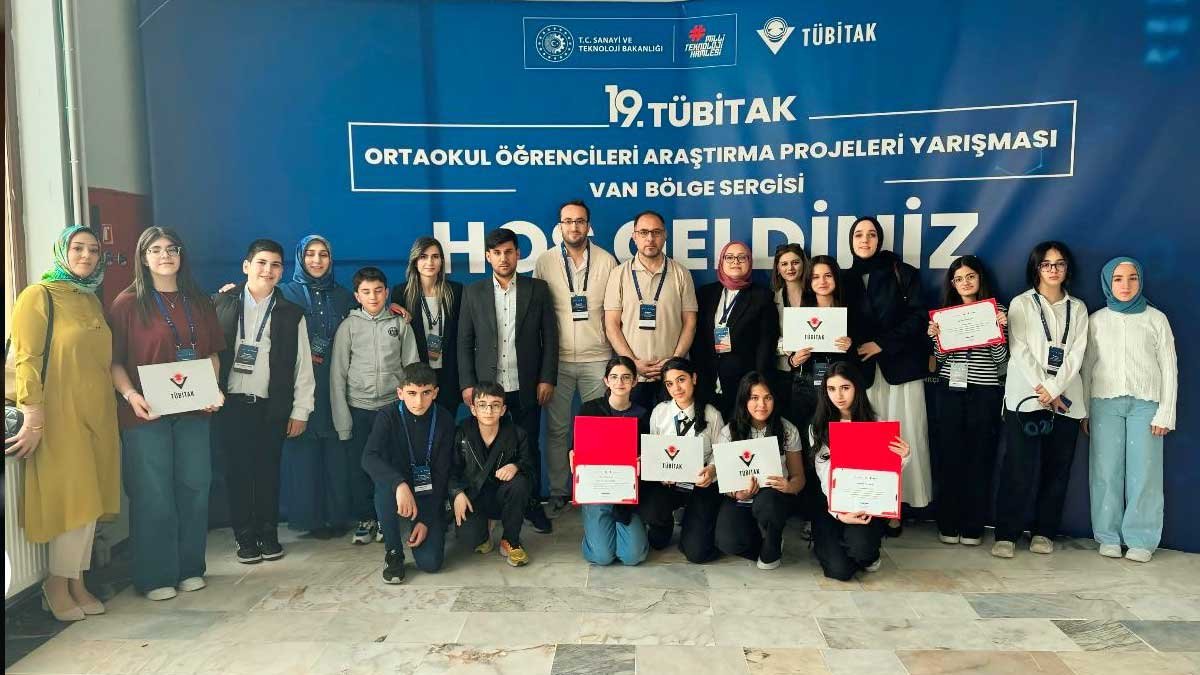 TÜBİTAK tarafından Van'da düzenlenen 19. Ortaokul Öğrencileri Araştırma Projeleri Yarışması Bölge Finalleri’nde Ağrı’yı temsil eden öğrenciler, dört farklı alanda dereceye girdi