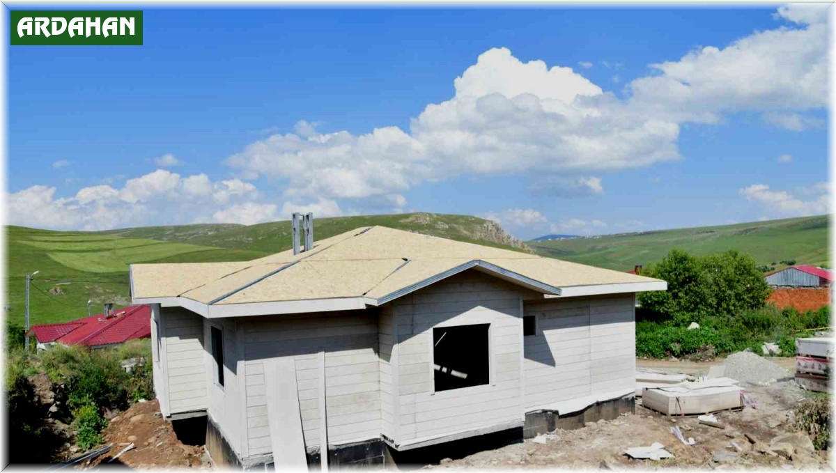 Ardahan'da, 2022 yılında merkez üssü Göle ilçesi olan 5 büyüklüğündeki depremde hasar gören konut ve ahırların yapımı devam ediyor.