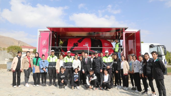Polis memuru Semih Demirel, Mobil Trafik Eğitim Tırı ile ülkeyi dolaştıklarını belirterek, "Bugün de Başkale'deyiz. Bu sayede öğrencilerimize trafik bilincini aşılamaya çalışıyoruz. İlk olarak tırın içinde teorik eğitimler veriyoruz, daha sonra çocuklarımızı parkura alıyoruz. Öğrendiklerini uygulamalarını sağlıyoruz." dedi.
