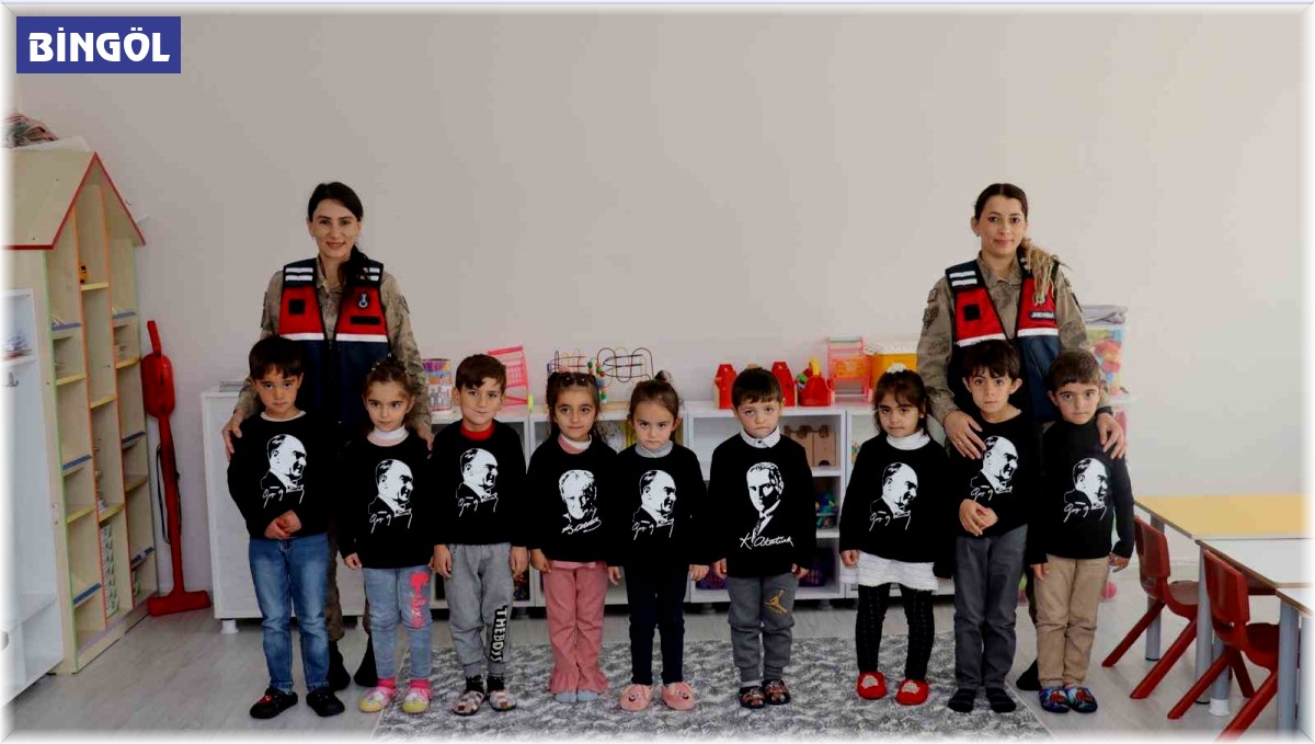 Bingöl İl Jandarma Komutanlığı personeli, Karlıova ilçesinde minik öğrencilerle birlikte Atatürk'ü andı.