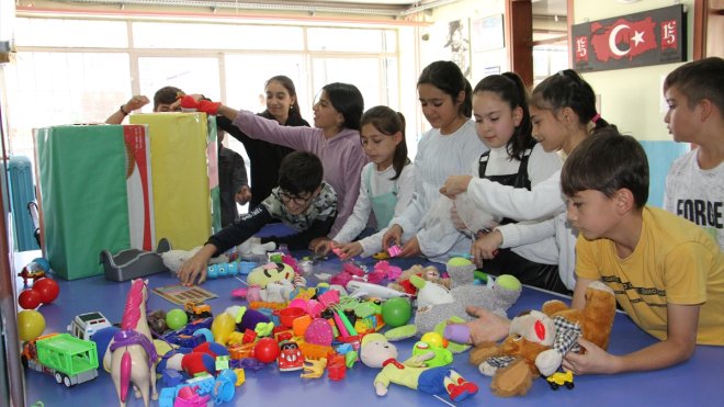 Kampanyaya destek veren okuldaki öğretmen ve öğrenciler, getirdikleri oyuncakları oluşturdukları kumbarada biriktirdi.