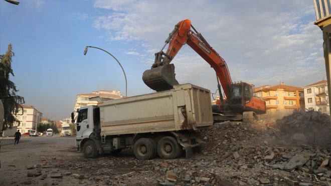 Kentte tehlike oluşturan ağır hasarlı binaların yıkım işlemleri kontrollü şekilde sürerken, ekiplerin enkaz kaldırma çalışmaları da aralıksız devam ediyor.