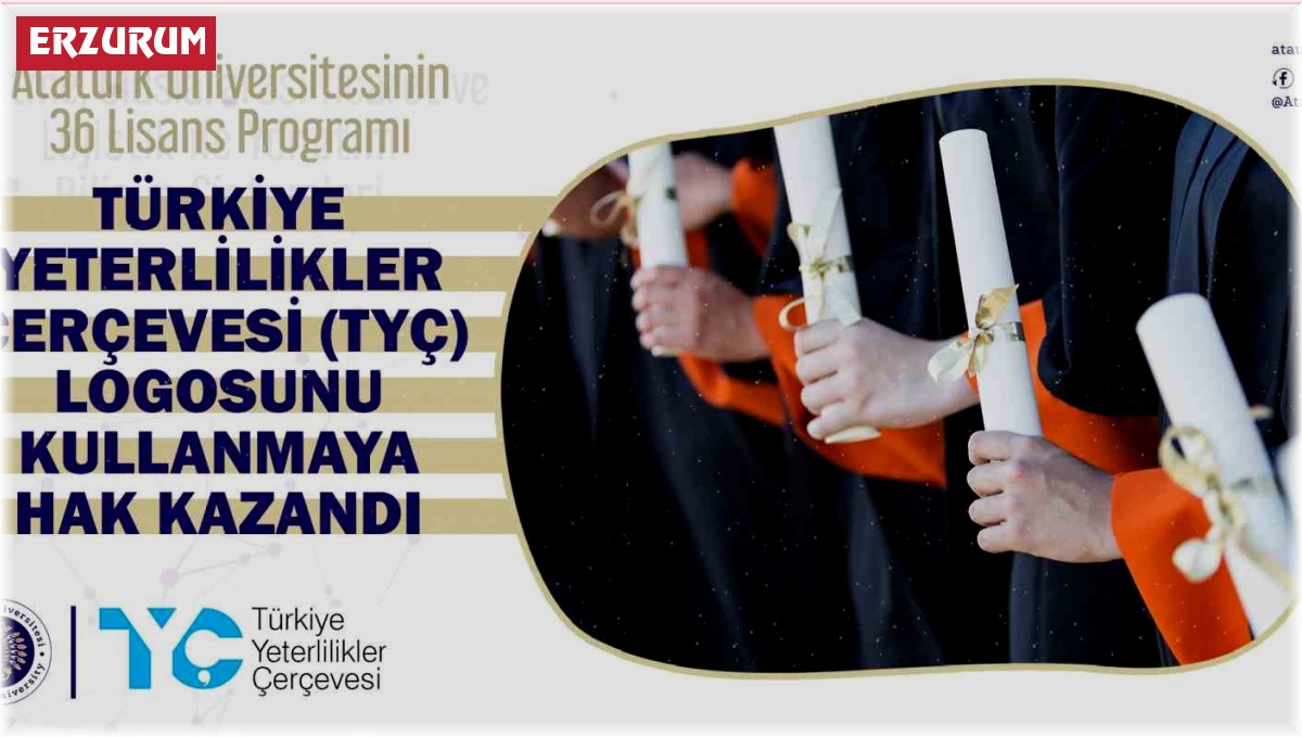 Atatürk Üniversitesinin 36 lisans programı, Türkiye Yeterlilikler Çerçevesi (TYÇ) logosunu kullanmaya hak kazandı.