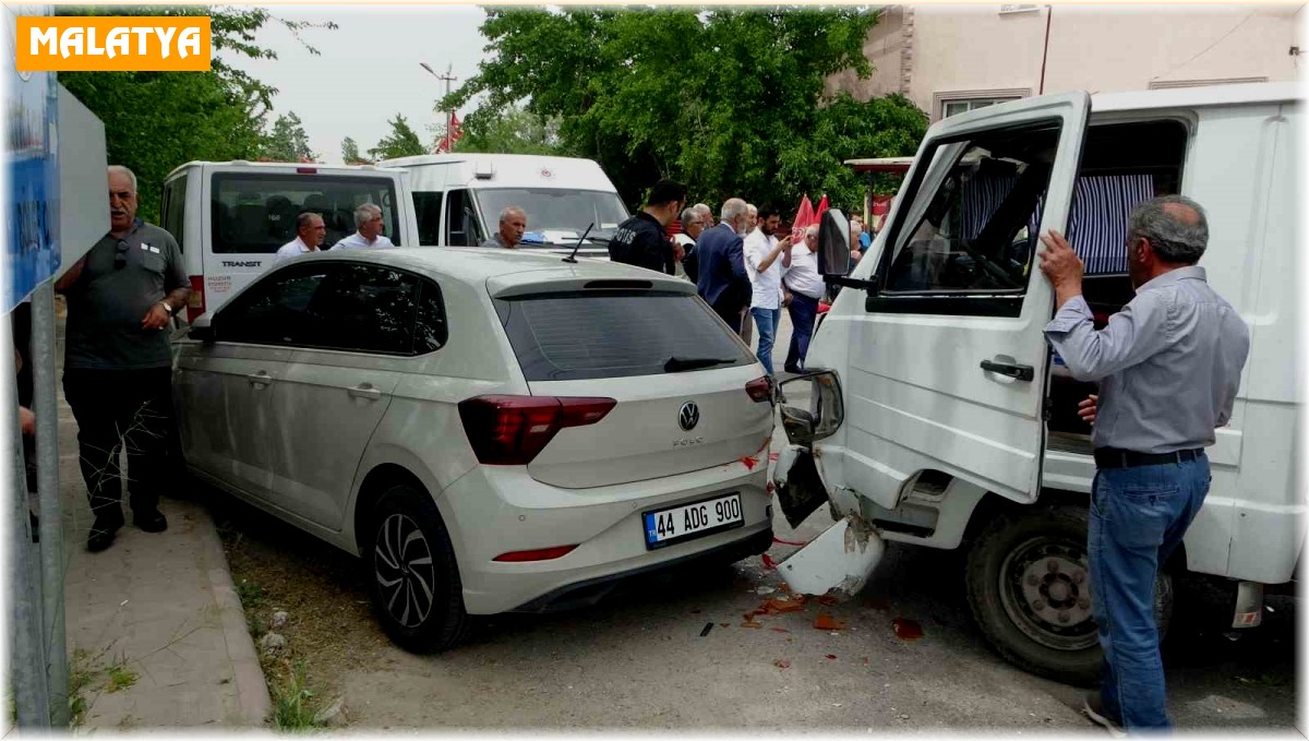 Malatya - Kaza, 13.00 sıralarında Battalgazi ilçesi Alacakapı Mahallesi'nde meydana geldi. Edinilen bilgilere göre, Selahattin Gürkan caddesi üzerinde seyir halinde Muhammed Taha Şahin idaresindeki 34 GR 2984 plakalı Volkswagen marka otomobil ile Mehmet D. yönetimindeki 44 FF 310 plakalı BMC marka kamyonet kavşakta çarpıştı. Kazada savrulan kamyonet park halindeki iki araca da çarparken S.İ. yaralandı. İhbar üzerine bölgeye polis ile sağlık ekiplerinin sevk edildiği kazada yaralı hastaneye kaldırılarak tedavi altına alındı.