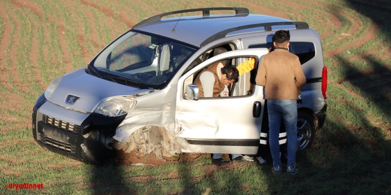 Hafif ticari araç, çarpışmanın etkisiyle yolun kenarındaki tarlaya devrildi.