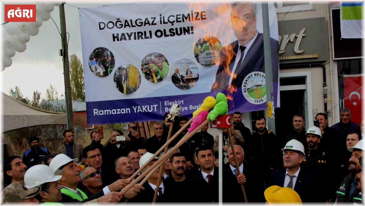 Eleşkirt'te 30 yıllık doğalgaz hasreti son buldu. Düzenlen törende Ağrı Valisi Mustafa Koç, Eleşkirt Kaymakamı Murat Güneş, Eleşkirt Belediye Başkanı Ramazan Yakut'un doğalgaz meşalesini yakmasıyla ilçenin 30 yıllık doğalgaz hasreti sona erdi.