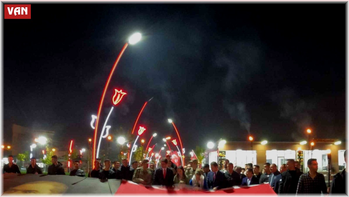 Van: Erciş Kaymakamlığı tarafından düzenlenen 100. yıl etkinliğinde Erciş Ağız ve Diş Sağlığı Merkezi önünde bir araya gelen vatandaşlar, ellerinde dev Türk bayrakları, meşaleler, Atatürk'ün fotoğraflarıyla Şehit Nusret Akça Millet Bahçesi'ne kadar yürüdü. Saygı duruşunda bulunulması ve İstiklal Marşı'nın okunmasının ardından Kızılay görevlileri tarafından vatandaşlara çorba ikram edilerek program sona erdi.