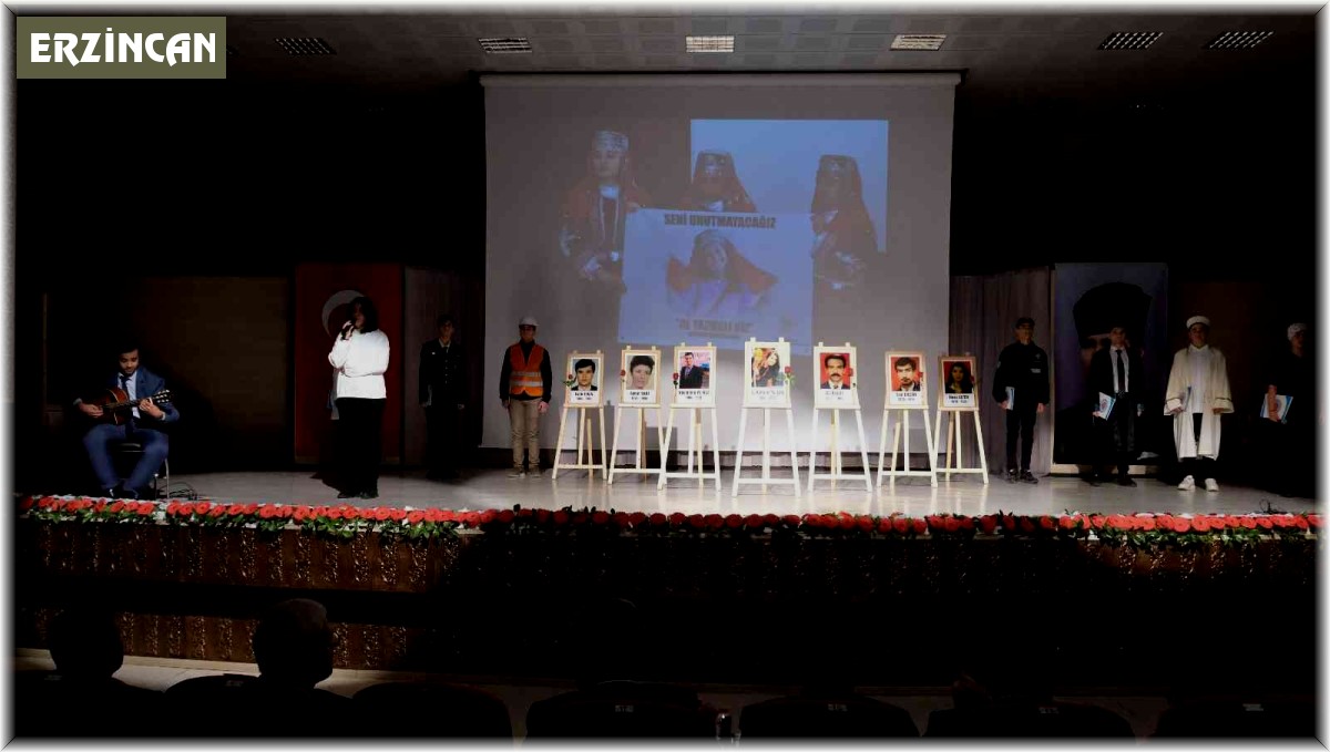 Konuşmaların ardından Erzincan Hezarfen Ahmet Çelebi Mesleki ve Teknik Anadolu Lisesi tarafından hazırlanan "ibretlik hikaye" oyunu oynanarak şiirler okundu. Daha sonra şehit olan öğretmenler; Aybüke Yalçın, Necmettin Yılmaz, Aynur Sarı, Fatih Tekin, Ali Bulut, Erol Ercan, Neşe Alten'in fotoğrafları sergilenerek "Şehit öğretmenlere saygı" adlı oratoryo gösterisi ile program devam etti.