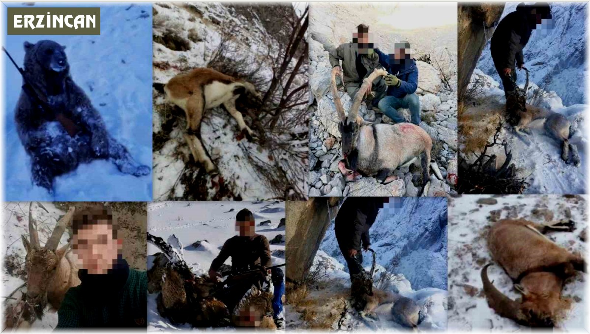 Erzincan'da nesli tükenme tehlikesi altında olan türlerin kırmızı listesinde bulunan ve avlanması yasak olan 18 dağ keçisi, 4 çengel boynuzlu dağ keçisi (şamua), 1 boz ayı ve 1 Anadolu koyunu vurdukları paylaştıkları sosyal medya hesaplarından tespit edilen 5 kaçak avcıya toplamda 5 milyon 207 bin 178 TL rekor para cezası kesildi.