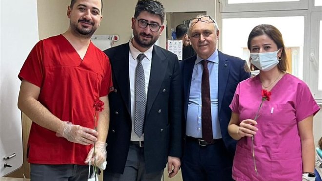Başhekim Tuşik, 22 Kasım Dünya Diş Hekimleri Günü dolayısıyla poliklinik odalarında ziyaret ettiği Ağız ve Diş Sağlığı Merkezi'ndeki diş hekimlerine karanfil dağıttı.