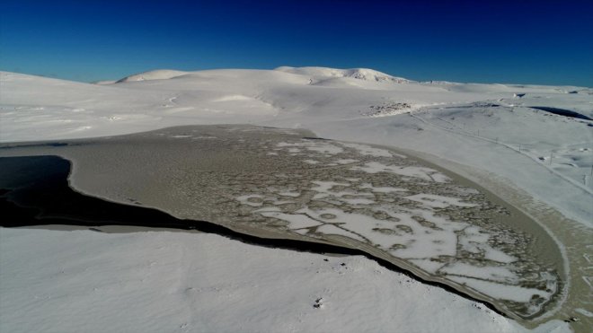 Göletin büyük bölümü donarken güney kesiminde de buzlanma oluştu.