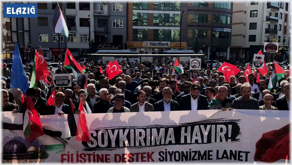 Elazığ'da düzenlenen programda, meydanı dolduran yüzlerce kişi Filistin'e destek verdi.