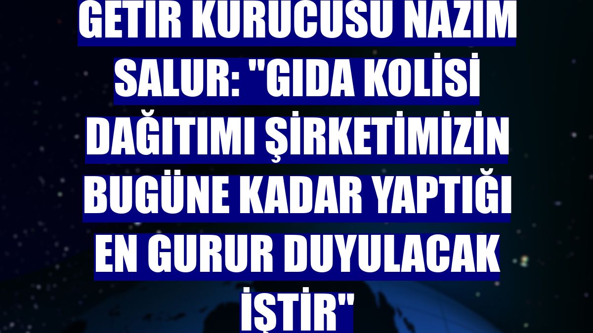 İstanbul Valisi Ali Yerlikaya'nın duyurduğu 65 yaş ve üstü maddi durumu iyi olmayan 50 bin vatandaşa düzenli olarak 6 hafta boyunca gıda kolisi yardım kampanyası kapsamında kolilerin dağıtımını ücretsiz olarak üstlenen Getir'in Kurucusu Nazım Salur, AA muhabirine yaptığı açıklamada, İstanbul Valiliği ile birlikte yaptıkları gıda kolisi dağıtım kampanyasının şirketin bugüne kadarki en gurur duydukları iş olduğunu söyledi.