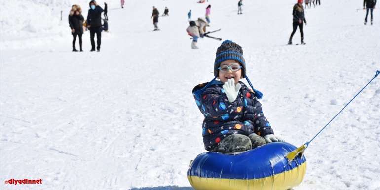 Sokağa çıkma kısıtlamasının olmadığı ilk cumartesi merkeze giden vatandaşlar, snowboard ve kayak yapıp kızakla kayarak keyifli anlar yaşadı.