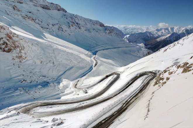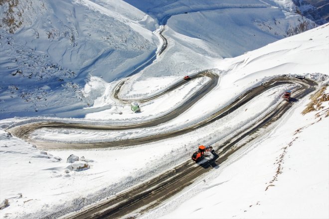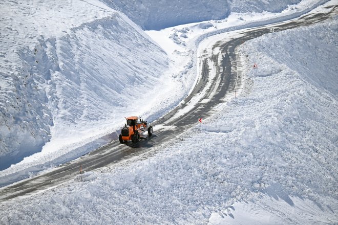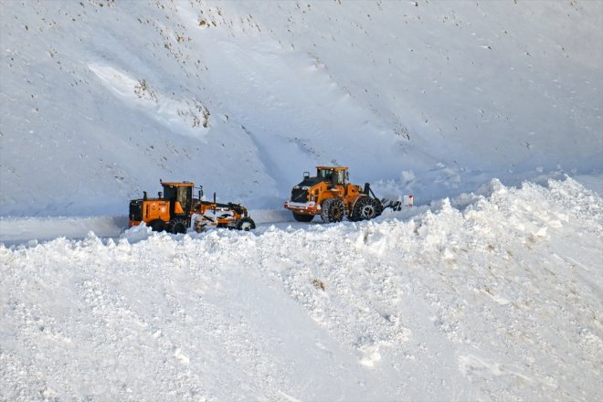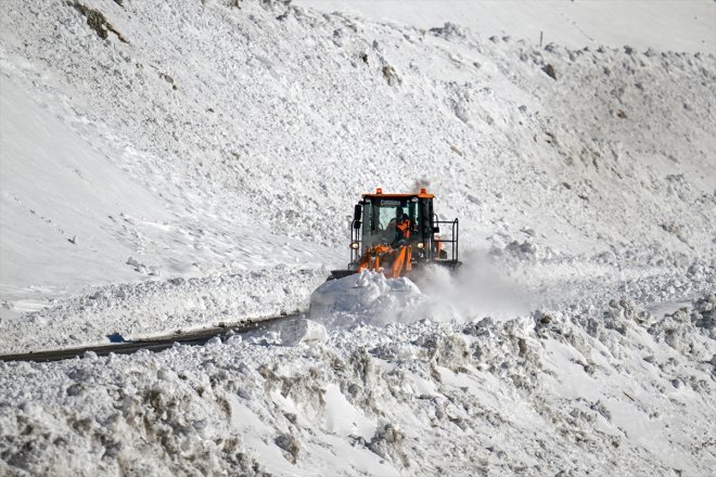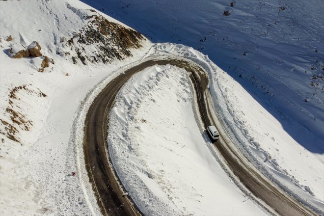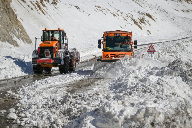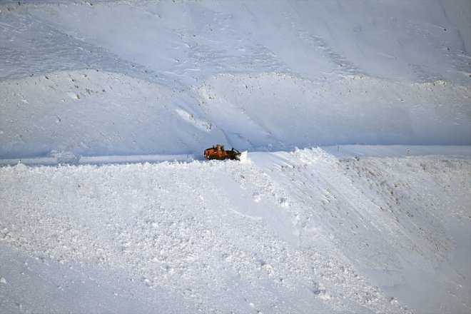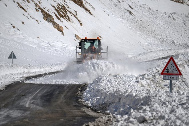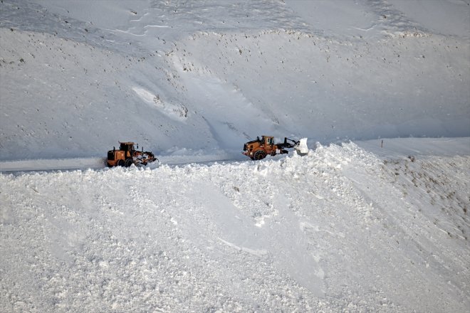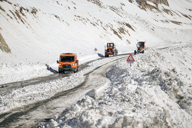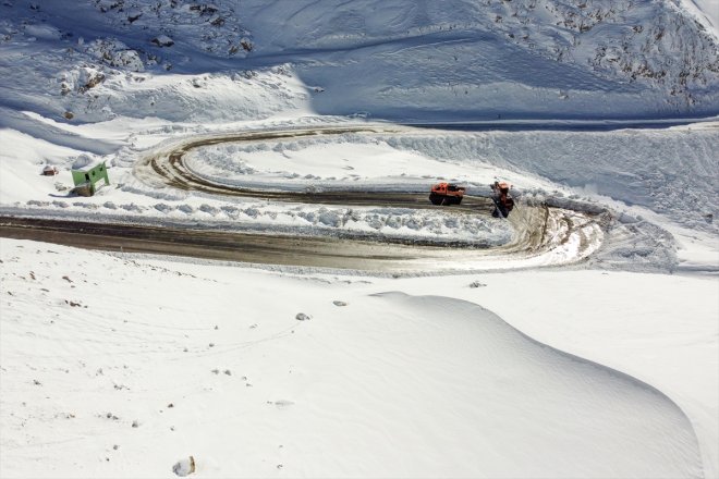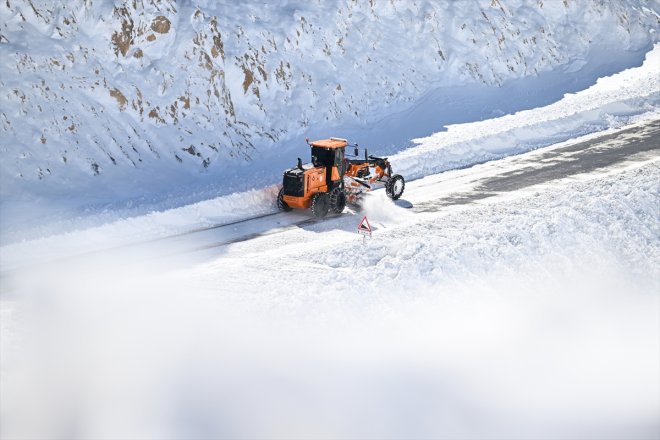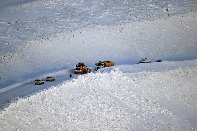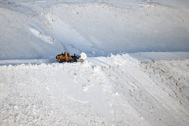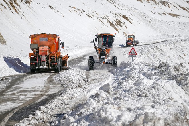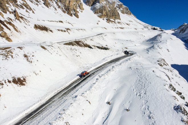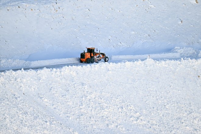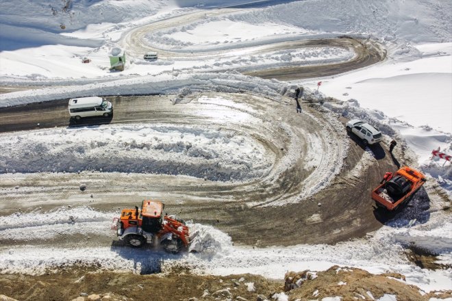 Kar kalınlığının yer yer yarım metreye ulaştığı bölgede 6 iş makinesiyle yürütülen çalışma sonucu yolun tek şeridi ulaşıma açıldı.