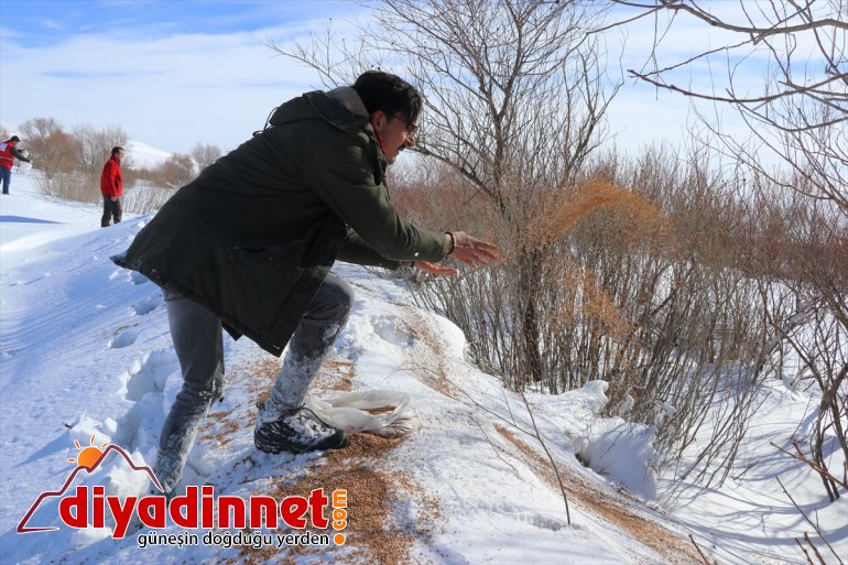 Hava sıcaklığının sıfırın altında 21 derece ölçüldüğü ve kar kalınlığının yüksek kesimlerde yer yer bir metreye ulaştığı kentte gönüllüler ve görevliler, Cumaçay köyü yakınlarında farklı noktalara bir ton buğday, maydanoz, lahana, marul, ekmek, simit ve poğaça bıraktı.