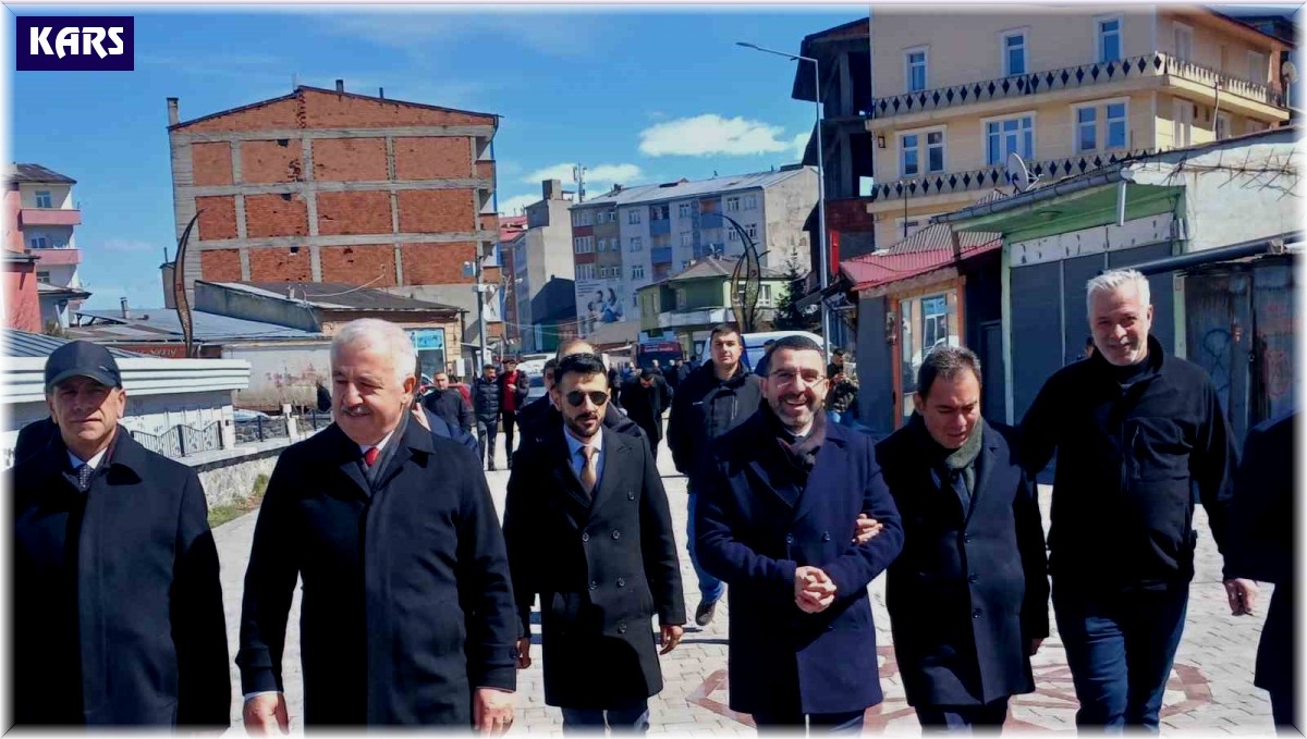 Kars - 65. Hükümet Ulaştırma ve Altyapı Bakanı Ahmet Arslan, AK Parti Milletvekili Adem Çalkın, Cumhur İttifakı Belediye Başkan Adayı Prof. Dr. Ötüken Senger'e destek için esnaf ziyareti yaptı.