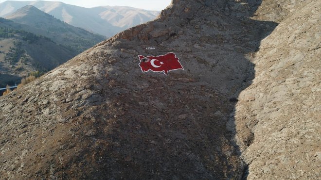 Elazığ - Elazığ'ın Keban ilçesinde kaya üzerine yapılan Türkiye haritası boyanarak yenilendi.