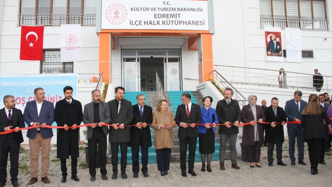 "Bunların çoğunu yeniledik, diğerlerinin yenileme çalışmaları da devam ediyor. Bugün burada açılışını gerçekleştirdiğimiz 650 metrekare kullanıma sahip Edremit İlçe Halk Kütüphanemizde, çocuklarımıza yönelik alanlara özel bir önem verdik. Kütüphanede, okul öncesi, gençlik bölümleri, süreli yayınlar bölümü, yetişkin okuma araştırma salonumuz bulunuyor. İlçe Halk Kütüphanemize bağlı olarak, Fidanlık Halk Kütüphanesi kurduk. Gençlerimiz bu kütüphaneyi de çok seviyor. Kütüphaneler için bize her zaman destek olan Sayın Valimize ve Edremit Belediye Başkanımıza teşekkür ediyorum. Bu güzel binayı kütüphane olarak yapılandırmak üzere bakanlığımıza tahsis eden Edremit Belediyemize de ayrıca teşekkür ediyorum."