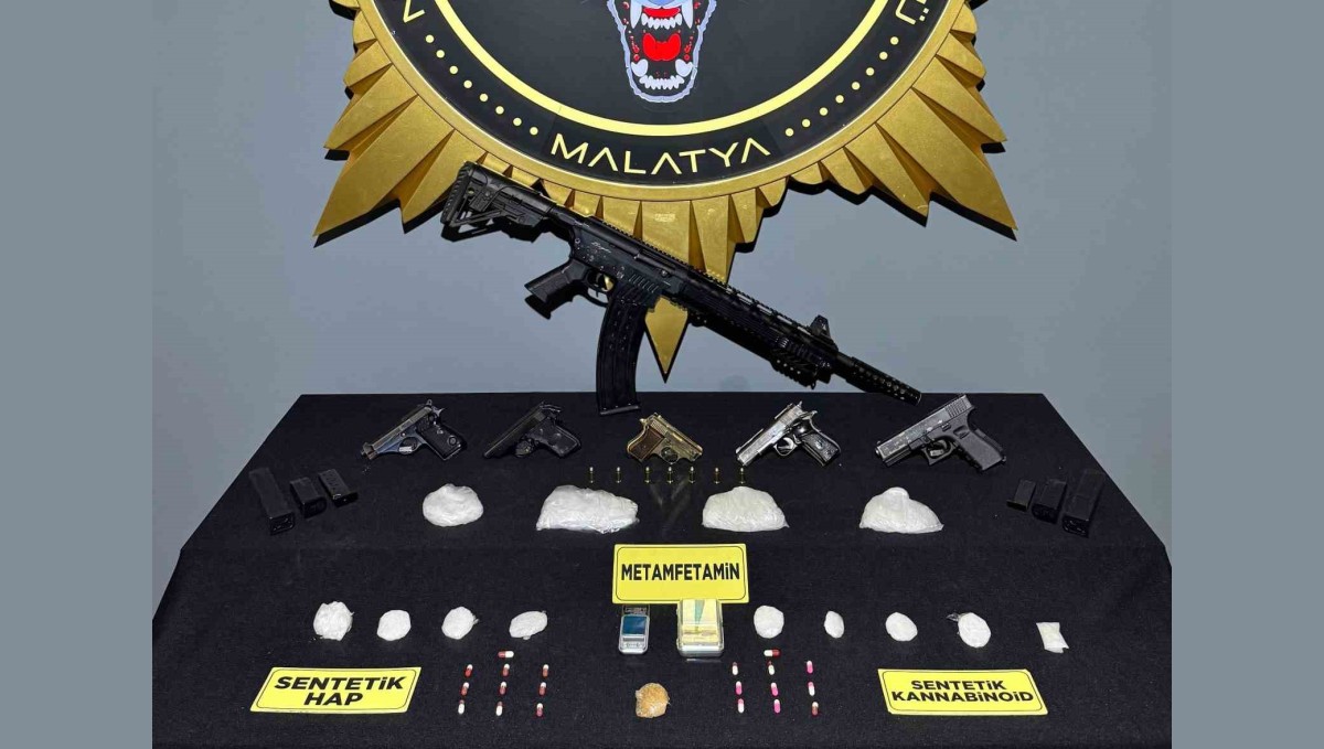 MALATYA (İHA) - Malatya'da, İl Emniyet Müdürlüğü Narkotik Suçlarla Mücadele Şube Müdürlüğü ekipleri, fiziki ve teknik takiplerin ardından, uyuşturucu madde satıcılarına yönelik eş zamanlı bir operasyon gerçekleştirdi. Operasyonda 472 gram metamfetamin maddesi, 3 gram sentetik kannabinoid maddesi,20 adet sentetik ecza, 2 adet hassas terazi,1 adet av tüfeği, 5 adet ruhsatsız tabanca ele geçirilirken 3 zanlı gözaltına alındı. Polis merkezindeki işlemlerinin ardından adliyeye sevk edilen zanlılardan 2'si tutuklanırken diğer zanlıya ise adli kontrol uygulandı.