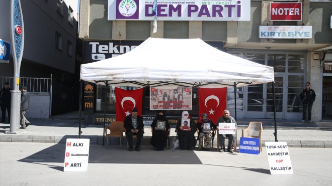 MUŞ - Muş'ta çocuklarının, terör örgütü PKK tarafından dağa götürülmesinden DEM Parti'yi sorumlu tutan aileler, partinin il başkanlığı binası önündeki "evlat nöbeti"ni sürdürüyor.