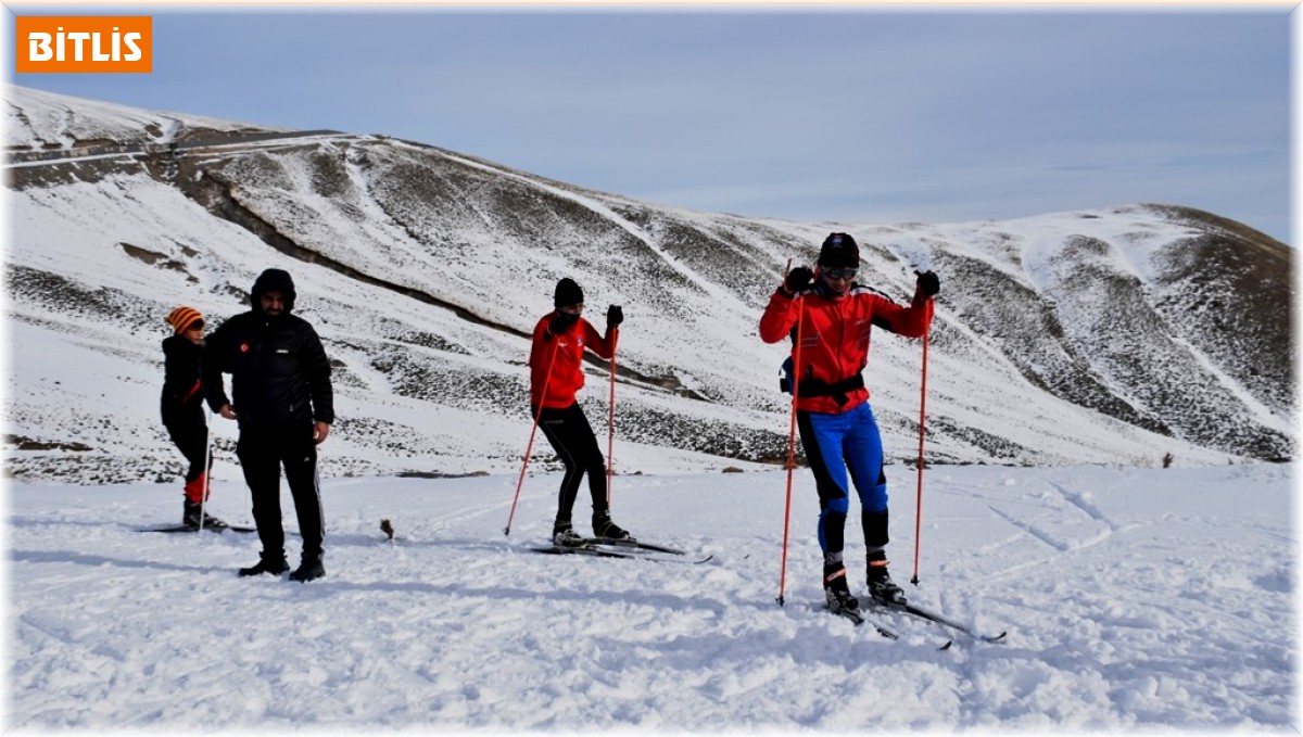 Bitlis'teki kayaklı koşu takımı, şehirde tek kar alan yer olan Nemrut Dağı'nda antrenman yaparak yarışlara hazırlanıyor.