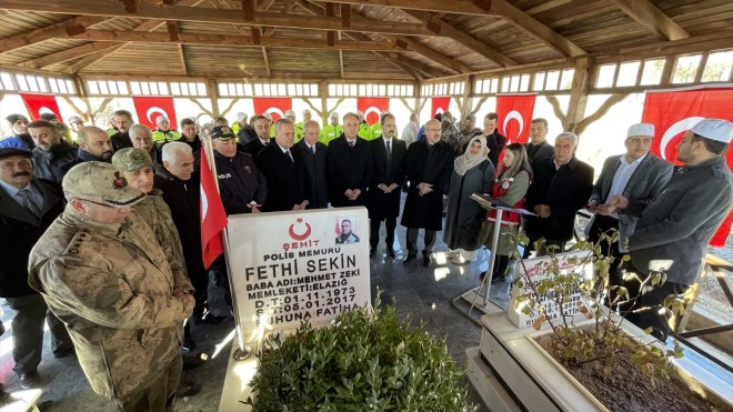 Şehit Sekin'in, Doğancık köyündeki kabri başında düzenlenen törende, Kur'an-ı Kerim okundu, İl Müftüsü İrfan Üstündağ tarafından dua edildi.
