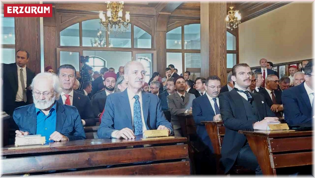 TBMM Başkanı Numan Kurtulmuş, Anadolu kültürünün, Anadolu irfanının, milli seciyenin, milli ahlakın ve milli kültürünün merkez şehirlerinden birisi olan Erzurum'da olmanın mutluluğunu yaşadıklarını ifade ederek, "Bugün burada Milli Mücadele ruhunu yeniden yaşamak, Kuvayi Milliye anlayışını yeniden idrak etmek, ülkemizin vermiş olduğu o büyük ulusal kurtuluş mücadelesinin hatıralarını yad etmek için bir aradayız. Bugün burada Erzurum Kongresi'nin yüz dördüncü yıl dönümü dolayısıyla birlikte hem geçmişten bir şekilde geçmişi yad ederek o günleri hatırlayacağız. Sonraki nesillere hatırlatacağız ama herhalde daha önemlisi o günlerden alacağımız derslerle bugünün Türkiye'si ve bugünün dünyasına milli duruşumuzu sergilemek bakımından ne şekilde bakacağımız konusunda dersler çıkaracağız. Ben de sözlerimin başında Erzurum Kongresi'nde Milli Mücadele'ye öncülük eden, her birisi kendi bölgesinden, kendi yöresinden önemli şahsiyetler olarak buraya gelen ve başlarında Gazi Meclisimizin de kurucu başkanı olan, Cumhuriyetimizin de banisi olan Gazi Mustafa Kemal Atatürk olmak üzere bütün büyüklerimizi, bütün kahramanlarımızı, minnet ve şükranla anıyorum. Onların hatıraları önünde tazimle eğiliyorum. Değerli dostlar, sevgili Erzurumlular, çok şerefli, çok güçlü bir tarihe sahibiz. Tarihimizin her safhası yarın için ışık tutabilecek, yarın için ders çıkarabileceğimiz fevkalade önemli olaylarla doludur. Bunları anlatacağız" dedi.