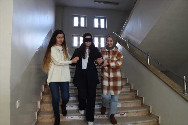 Böyle bir sürpriz beklemediğini belirten Kalın, "Gözlerimi kapatıp onların yardımıyla aşağı indim. Gözlerimi açtıkları an ağlamaya başladım. Hayatımda yaşadığım en güzel anlardan biri. Öğretmen olduğum için çok mutluyum, iyi ki öğretmenim" diye konuştu.