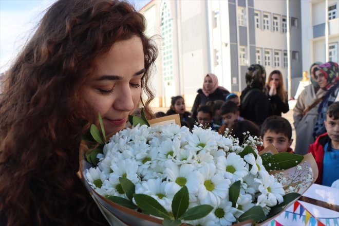 Van: Van'ın Erciş ilçesinde öğrenciler, velileriyle hazırladıkları "Dünyaya Bir Daha Gelsem Annemden Sonra Sana Gelmek İsterdim" yazılı pankartla yaptıkları kutlamayla öğretmenlerini duygulandırdı.