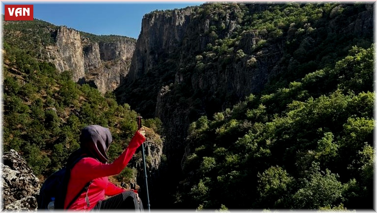 Vadi Doğa Sporları Kulübü üyeleri, Çaldıran ilçesindeki doğa harikası Masiro kanyonunda yürüyüş yaparak, derede yüzerek serinledi.