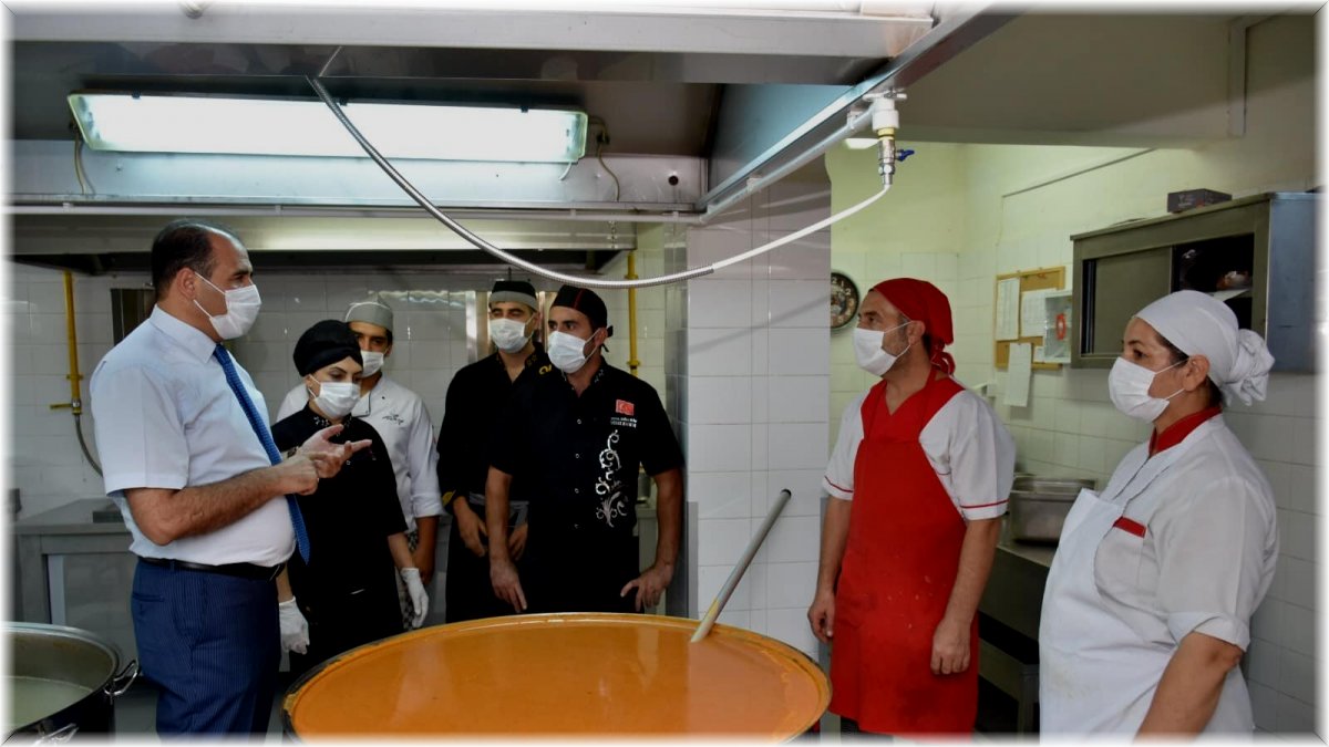 Erzincan İl Milli Eğitim Müdürü Aziz Gün, merkeze bağlı 24 okuldaki taşımalı öğrencilere yönelik öğlen arası sıcak yemek üreten Hürriyet Mesleki Teknik Anadolu Lisesi yemekhanesinde incelemelerde bulundu.