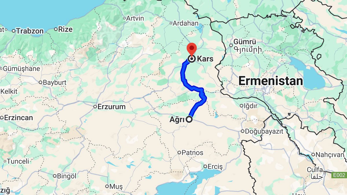 Bu rota, Ağrı-Kars arası yolculuk planlayan bireyler için hem kişisel araç hem de şehirler arası otobüs ulaşımı açısından en yaygın olarak kullanılan kara yolu güzergâhıdır.