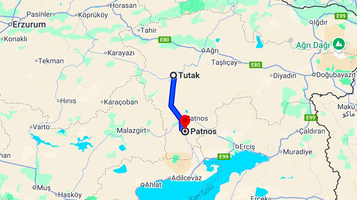 Yolculuk, D965 kara yolu üzerinden gerçekleştirilmektedir. Tutak'tan çıkışta Erenler Caddesi ve 128. Sokak takip edilerek Cumhuriyet Caddesi (D270)'ne bağlanılır. Ardından Ağrı-Bitlis Yolu üzerinden sağa dönülüp D965 karayoluna girilir. Yaklaşık 37,5 kilometrelik bu rota üzerinden ilerlenerek Tepeli Mahallesi üzerinden Patnos ilçe merkezine ulaşılır.