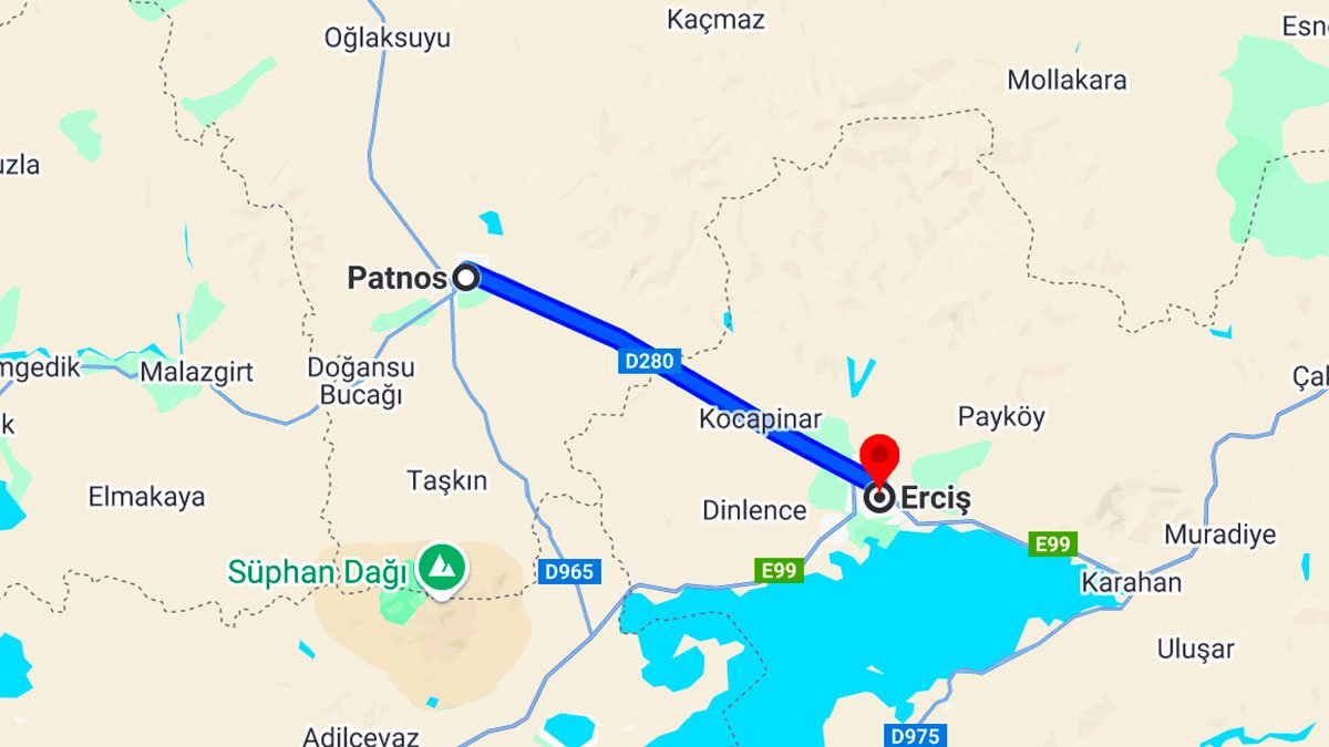 D280 karayolu, Patnos ile Erciş arasındaki ulaşımı sağlayan en hızlı ve doğrudan rotadır. Yol boyunca trafik yoğunluğu genellikle düşüktür ve sürüş konforu yüksektir. Güzergah üzerinde bölünmüş yol bulunması, ulaşımı daha güvenli ve hızlı hale getirir.