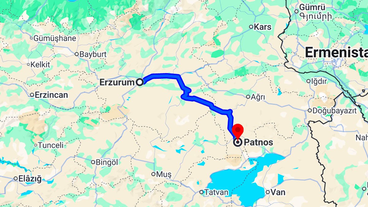 Erzurum'dan Patnos'a yapılan bu yolculuk, Doğu Anadolu'nun iki önemli yerleşim birimini birbirine bağlayan karayolu hattı üzerindedir ve bölgedeki ulaşım açısından yaygın olarak tercih edilmektedir.