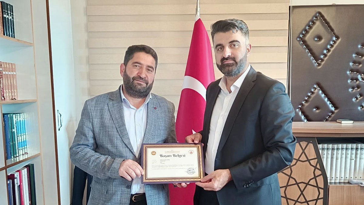Abdulvahap Güneş'e belgesi, 5 yılı aşkın süredir sürdürdüğü gençlik koordinatörlüğü görevindeki başarılı hizmetleri dolayısıyla takdim edildi. Belge, Taşlıçay İlçe Müftüsü Yusuf Özmen tarafından sunuldu.