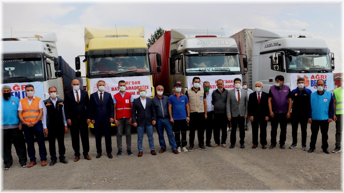 Yurdun çeşitli illerinde meydana gelen sel ve yangın felaketinden etkilenen vatandaşlara destek olmak amacıyla başlatılan "Ben De Varım" kampanyası kapsamında Ağrı ve ilçelerinden toplanan 4 tır yardım malzemesi, afet bölgelerine ulaştırılmak üzere yola çıktı.